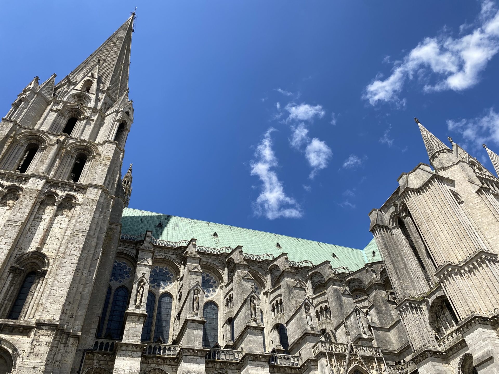 Nous voilà à Chartres, à une petite heure de route de chez nous. C’est une petite ville très sympa. Nous avons flané dans ses ruelles, longé l’Eure et ses petits ponts. Bien sur nous ne pouvions pas venir sans visiter la Cathédrale: elle est en partie rénovée à l’intérieur ce qui la rend encore plus fantastique. La hauteur est impressionnante et la blancheur de ses pierres magnifique.