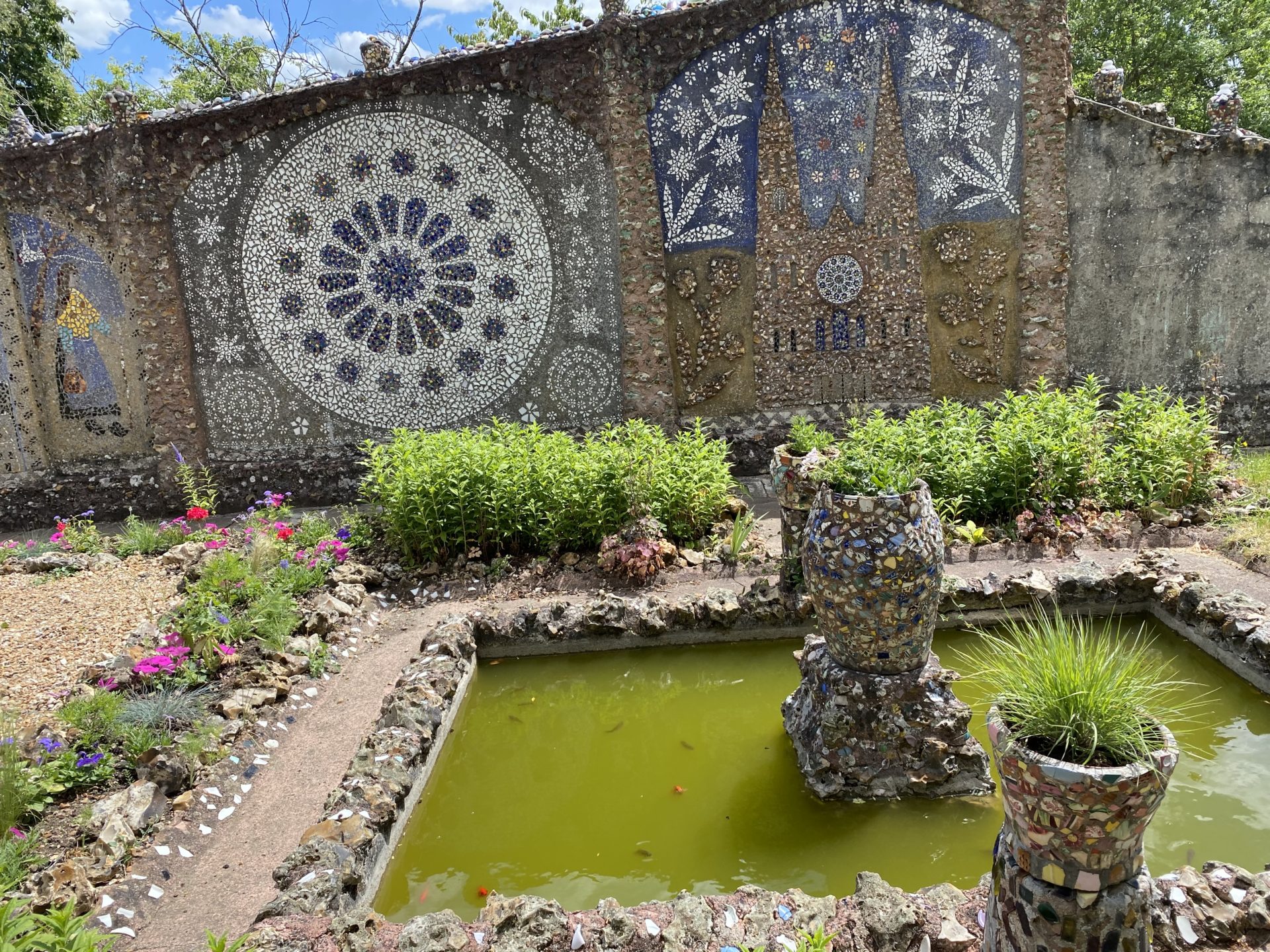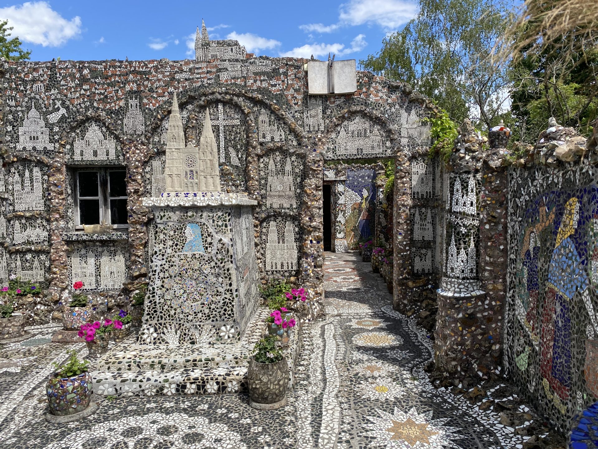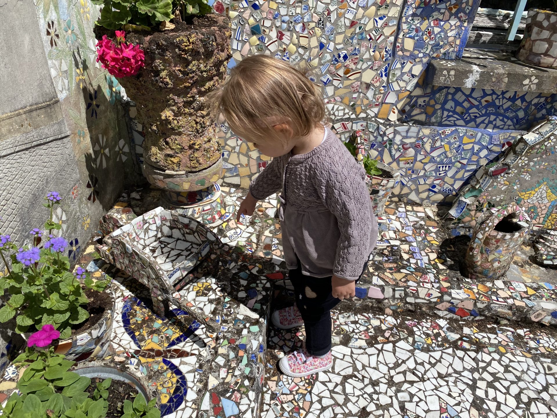 Après avoir mangé dans un petit bistro du centre ville nous avons continué jusqu’à la “Maison Picassiette”. C’est un incontournable! Raymond Isidore a ramassé des assiettes et verres cassés tout au long de sa vie pour décorer sa maison du sol au plafond et son jardin. C’est superbe et notre mini globetrotteuse a adoré chercher tous les détails.