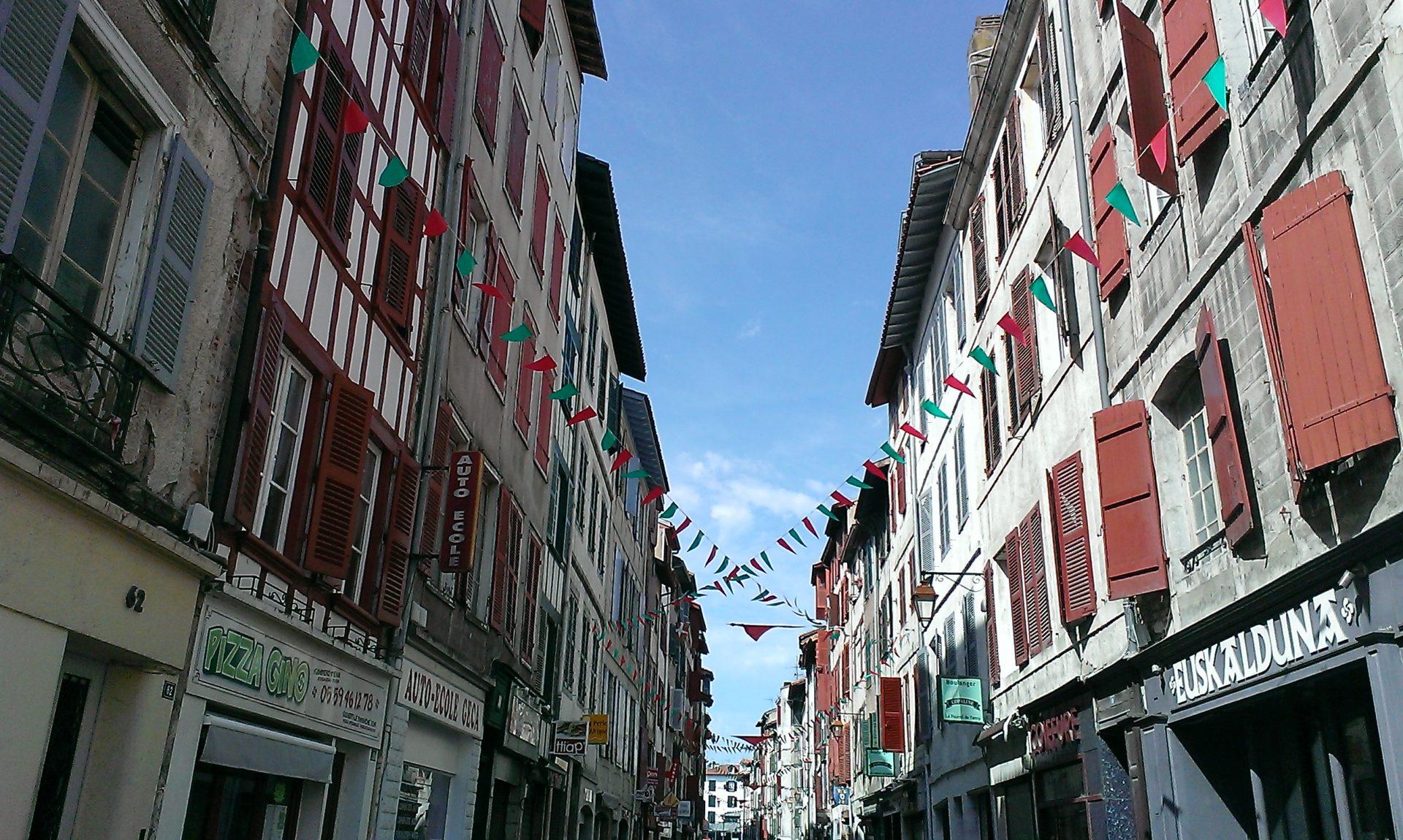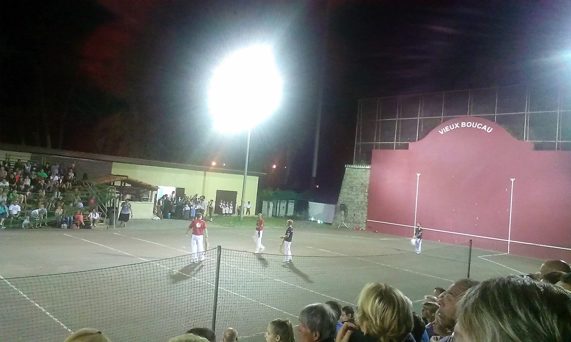 Après une super glace (c’est les vacances quand même), nous faisons une grosse balade dans la ville (décidément aujourd’hui le vélo est remplacé par la marche à pied). Puis nous mangeons sur la place et assistons à un spectacle folklorique au fronton et à un match de pelote basque.