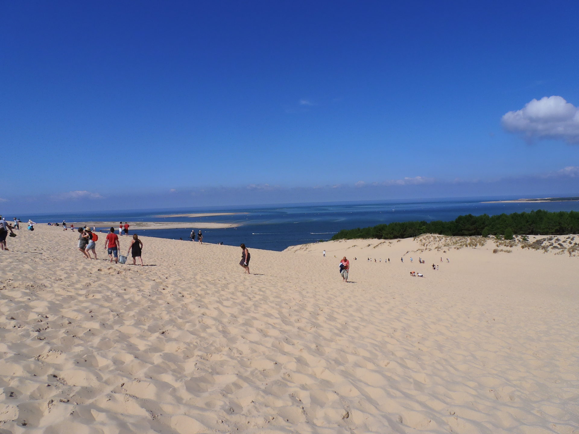 Après l’ascension de la Dune du Pilat avec sa vue magnifique, nous reprenons la route à travers les forêts de pins. C’est vraiment très agréable. Nous arrivons au chemin des résiniers où nous apprenons comment la sève des pins était récoltée. C’est super intéressant et l’ambiance familiale nous plait beaucoup. Je vous le conseille.