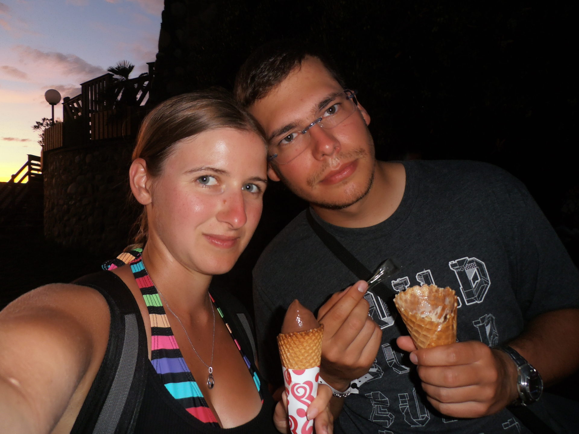 En arrivant nous visitons Arcachon et passons à coté des superbes maison de la ville d’hiver. Une petite balade sur la plage pour manger notre première glace des vacances. 30 petit kilomètres de vélo et nous montons notre premier campement.