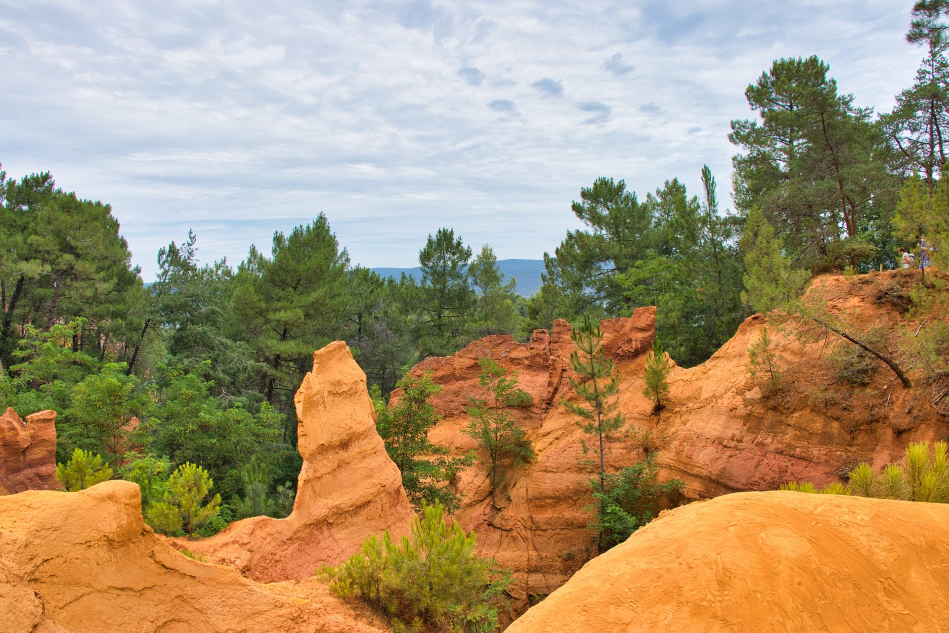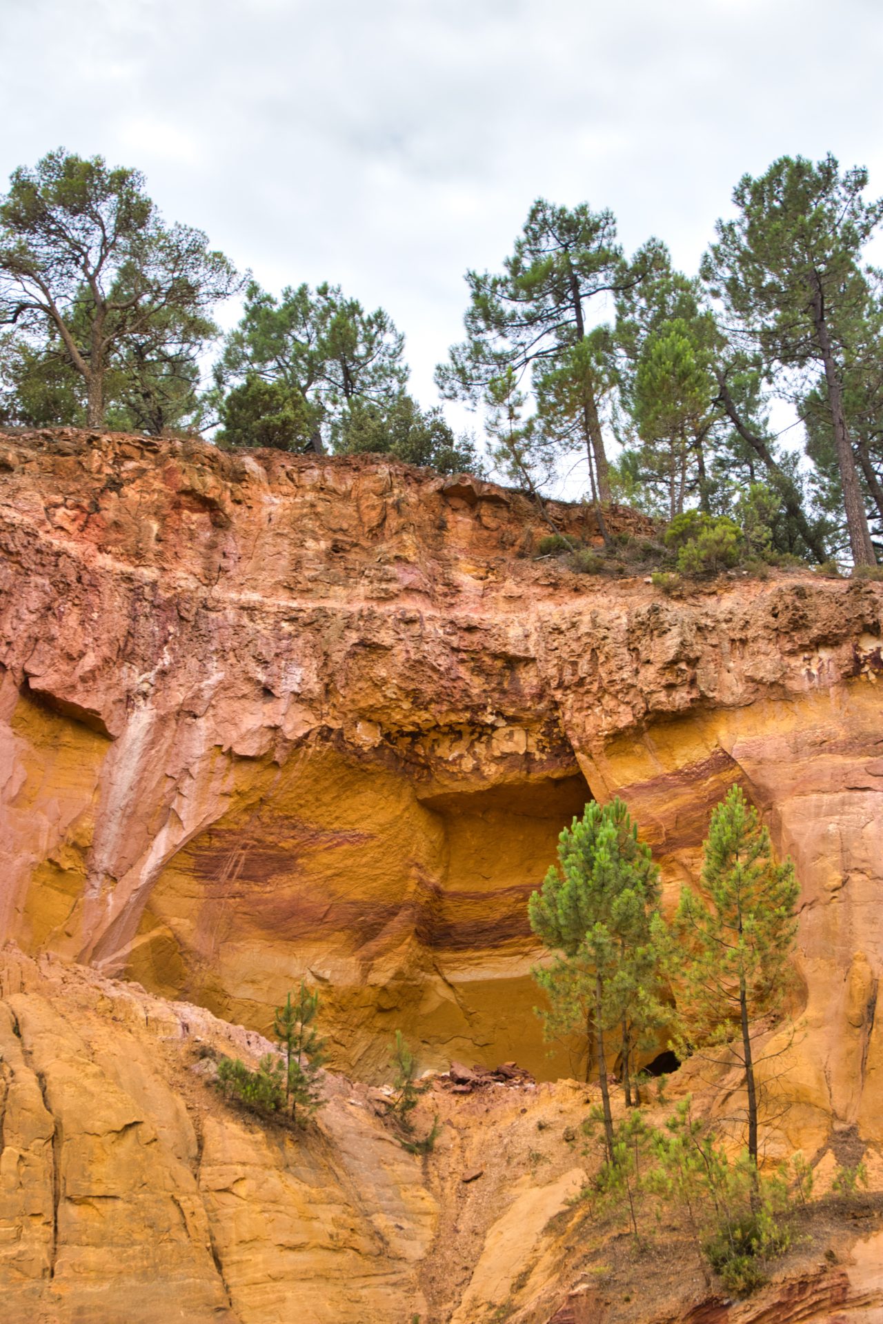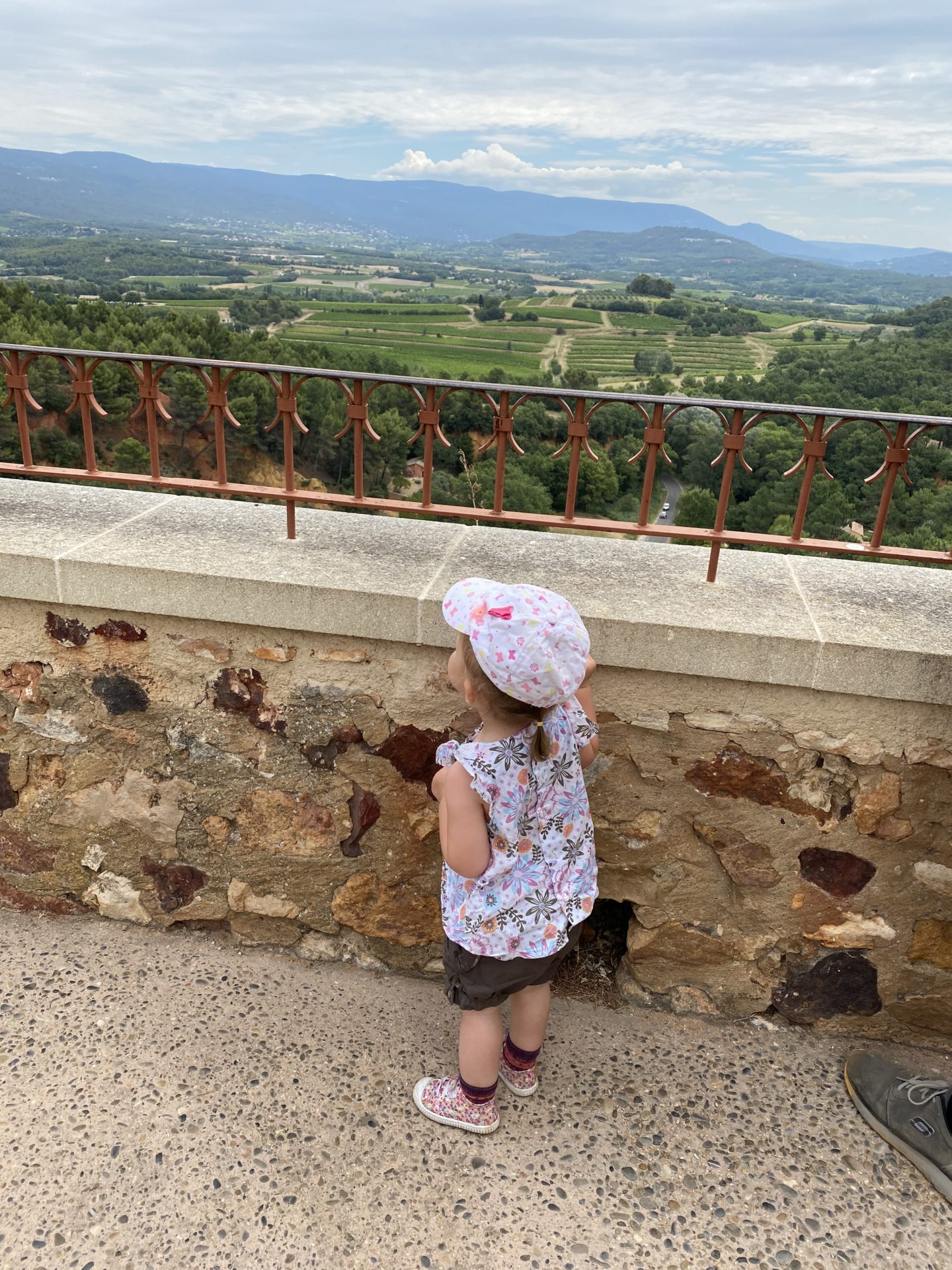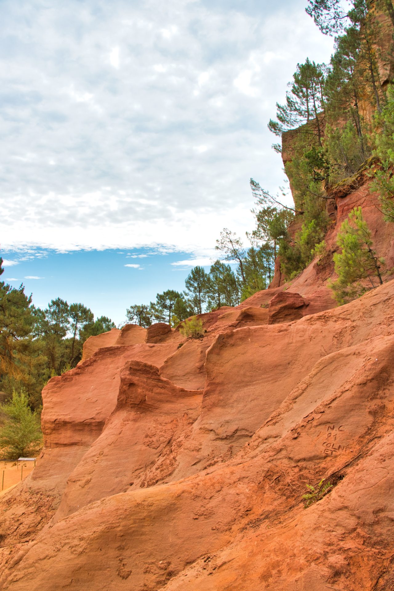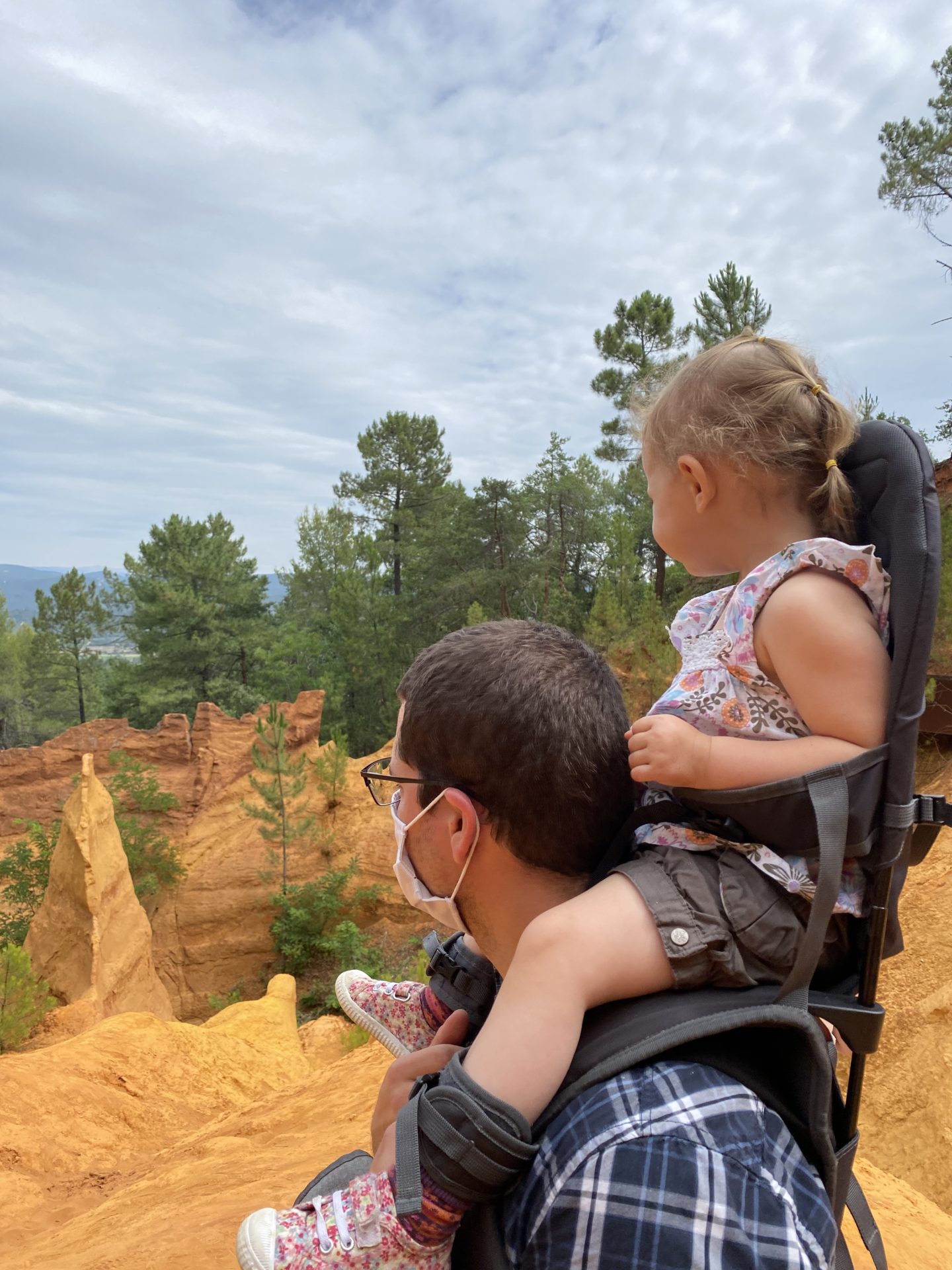 Les ocres du Roussillon: Nous avons fait une petite ballade agréable au sentier des ocres. Des couleurs splendides, on pourrait se croire dans l’ouest américain. Le chemin est facile à faire avec des enfants mais impossible avec une poussette. Prévoyez des chaussures de rechange car après la visite elles seront pleine de poussière rouge orangée.