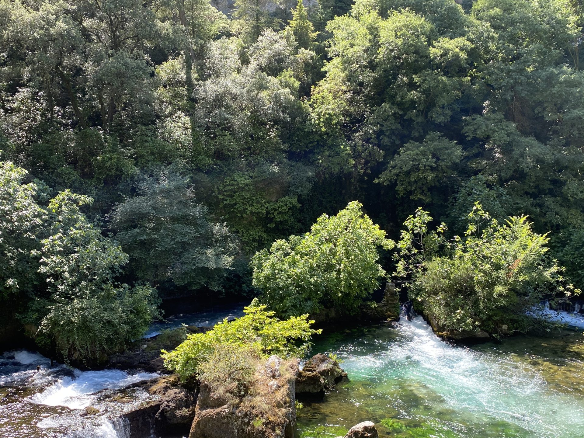 Visite de Fontaine de Vaucluse: Le jour de notre visite il y avait beaucoup de monde et le gouffre était vide d’eau suite à la sécheresse. Nous n’avons pas pu vraiment profiter de cette visite.