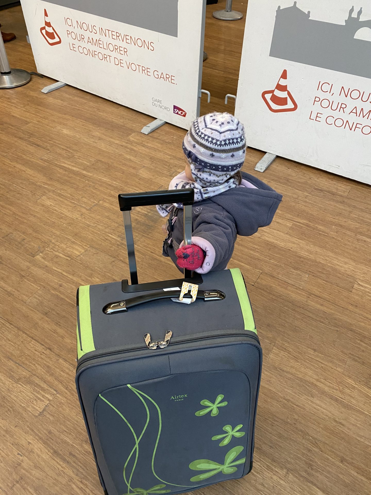Antonin devait partir pour le travail pendant deux semaines à Londres. C’est l’occasion idéale d’aller le rejoindre. Nous voilà partis; mes parents, notre mini globe trotteuse et moi; en Eurostrar!