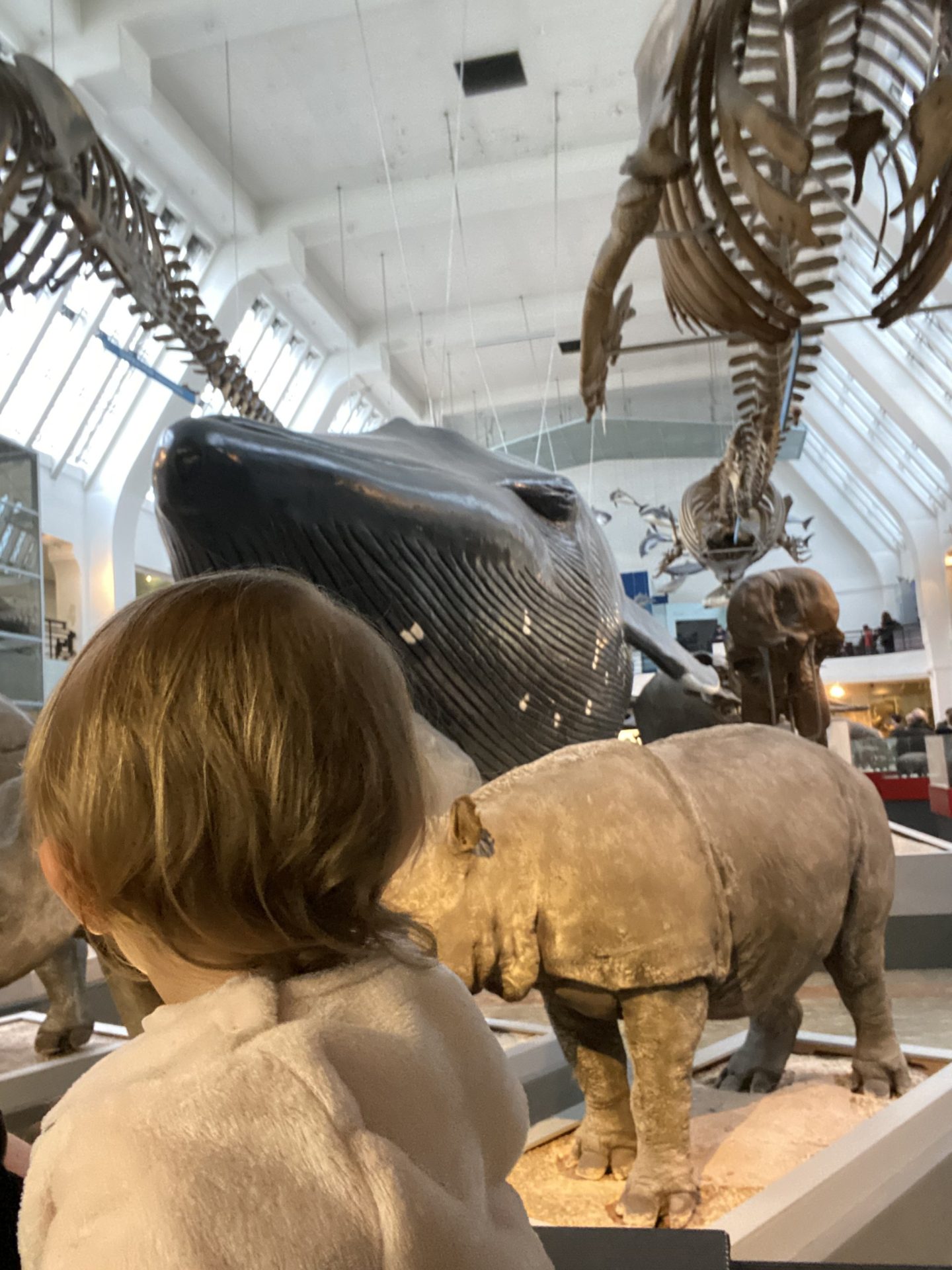 Mamie Mumu et Papy Hervé nous ont rejoint. Après avoir déposé les bagages à l’hôtel, nous prenons le métro jusqu’à chez Harrod’s, il y a de grands étalages et c’est très jolie. Nous mangeons là bas puis nous partons visiter le musée d’histoire naturelle. Elia s’est endormie assise sur les épaules.