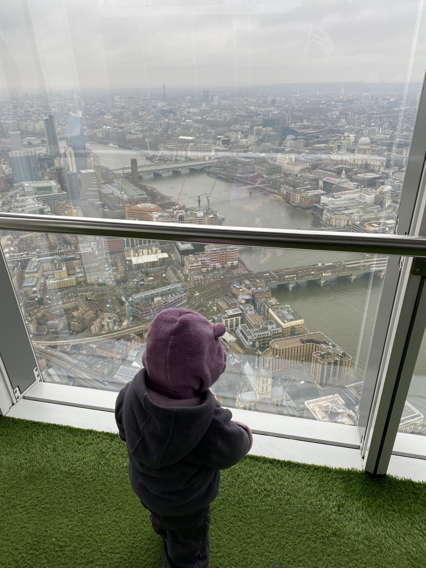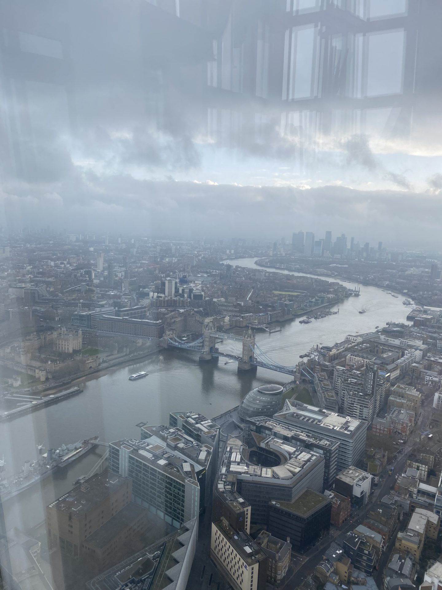Ce matin nous sommes allés à pied jusqu’à The Shard et nous sommes montés jusqu’au 72ème étage! (Merci le London pass) la vue est sublime mais attention au vertige! L’ascenseur va très vite: 6 mètres par seconde.