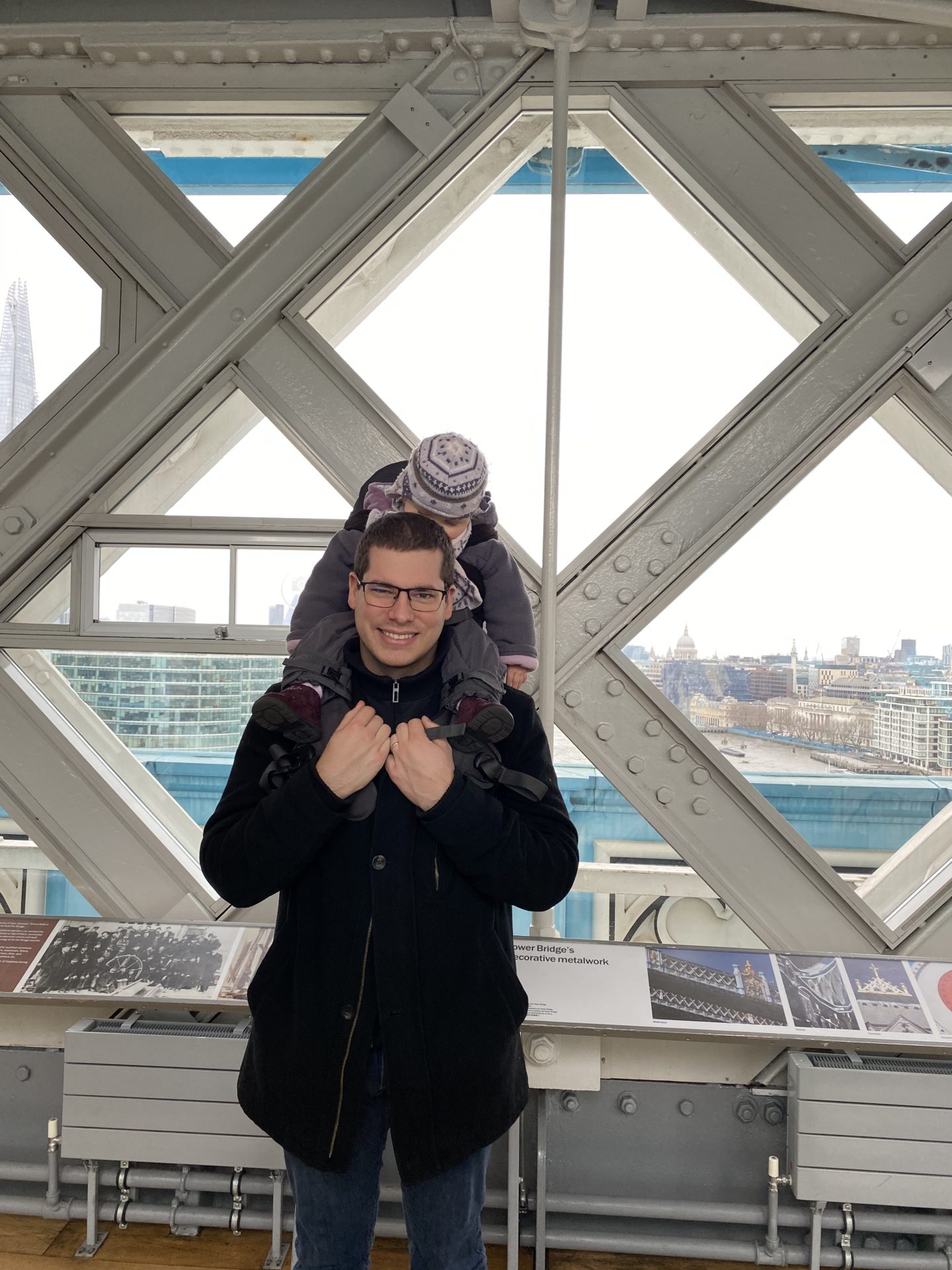Après mangé direction la visite du Tower Bridge, on marche tout en haut sur une passerelle transparente. ohhhhh! Elia s’est encore endormie sur les épaules de papa.