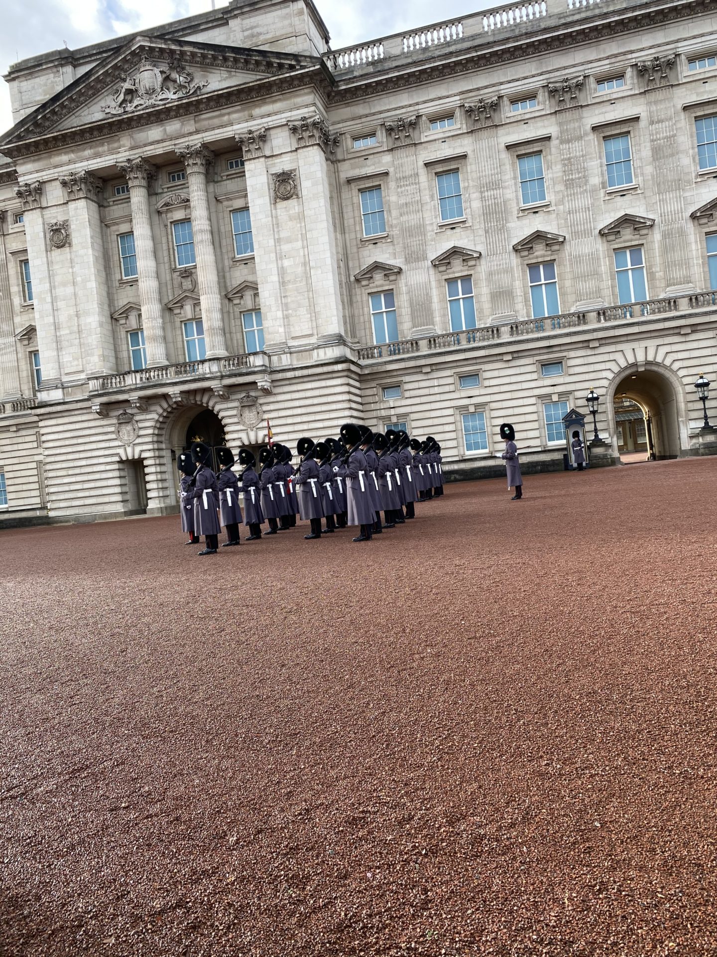 Nous reprenons le métro jusqu’à Buckingham Palace, le drapeau est levé donc la reine est là! Nous assistons à la reléve de la garde. Il y a tellement de monde que c’est dur de tout voir. Puis nous allons visiter l’abbaye de Westmister. Nous avons aperçu Big Ben derrière les échafaudages (dommage).